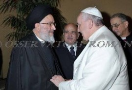 جهان: آیت الله سید مصطفی محقق داماد با پاپ فرانسیس رهبرکاتولیک های مسیحی جهان دیدار و گفتوگو کرد. این دیدار در جریان برگزاری سومین دور از نشست رهبران و علمای اسلام و مسیحیت با موضوع «نقش تربیتی مؤمنان در اجتماع» صورت گرفت که به دعوت کاردینال توران نماینده پاپ و رئیس شورای پاپی دیالوگ بین ادیان در واتیکان برگزار شده بود.