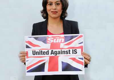 تصور کنید خانوادهای انگلیسی مسلمان و اعتدالگرای شما با روزنامههای صبح امروز دور میز صبحانه نشستهاند. روی صفحهی اول روزنامهی «سان» عکس خانمی با حجاب پرچم انگلستان که کنار آن با خط درشت نوشته شده «اتحاد علیه داعش» را میبینند. در گوشهی سمت راست تصویر هم، فراخوان کمپین بر علیه افراطگرایی اسلامی را میخوانند.