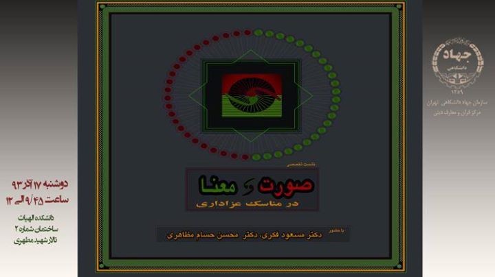 تاریخ و اندیشه- احیا: بهمناسبت فرارسیدن اربعین حسینی و بههمت مرکز فرهنگ و معارف دینی واحد جهاد دانشگاهی تهران، نشست تخصصی «صورت و معنا در مناسک عزاداری» برگزار میشود.